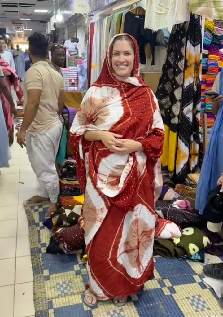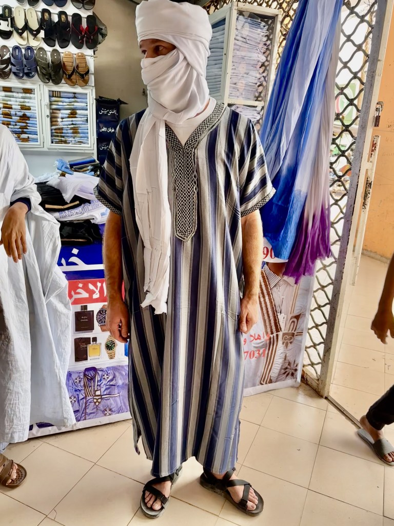 Shopping locally gives you the chance to meet the locals, work out the language barrier and get a real ‘feel’ of the friendliness of the culture. I now have several WhatsApp threads going with shop owners that were excited just to meet foreigners! The translations are wild as I don’t speak a lick of Arabic and they only speak in English that they learned from American movies 🙂 The ladies in the shop were incredibly sweet and helpful in teaching me how to tie up the traditional outfits and they even handed me their baby!!! Gosh, holding babies is the key to my heart. If you are a woman planning on taking a trip to Mauritania and are curious about dress code, I’ll share my experience, men reading this – you can skip a paragraph 😉