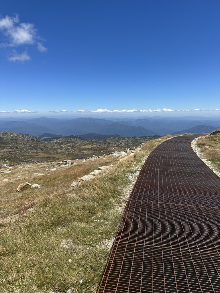 2. Thredbo to Summit – Roughly 12 miles out and back, this is the route we chose once we realized the trailhead was just outside our accommodations. Basically where in option 1 the chairlift carried people up we did it by foot. This route should be nicknamed stair stepper because that is exactly what it felt like if the stairdtepper had a setting for uneven and variable steps times 4 miles! Once we finally arrived at Eagle’s Nest we made our way over to the Summit path where most people started their trek. In fact, we only saw 1 other hiker on our way up! With our legs burning the other trekkers fresh off the lift we must’ve looked sweaty and out of breath but hey we felt like we were earning that summit! The grated path was a welcomed joy and we took a few opportunities to break and just take in the scenery.