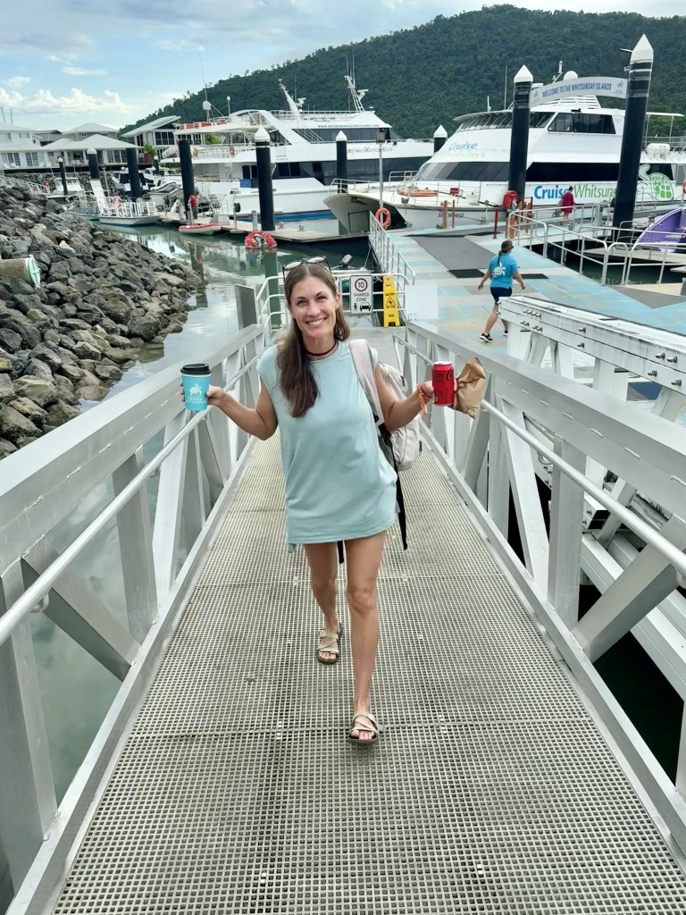 Tulsa to DFW, DFW to Brisbane, Brisbane to Proserpine. Land, get a taxi, 30-minute drive and find our hotel! You’ve heard of tiny homes but how about tiny boats?! For around $132 USD per night, you stay in one of their adorable houseboats! Don’t worry about seasickness though because it is only boat-themed and modeled; you are docked on land! A short walk takes you down to an oceanside restaurant and bar for a sunset you won’t forget! Our room was very cute, super comfortable, and clean, and the staff was great. If I had to choose a downside, it would be that it isn’t walkable to anything other than its on-property beach restaurant. It was great and all, but if you wanted something else, you would need to grab a taxi or an Uber! We didn’t mind though, after our long flights, we enjoyed the time without pressure to get out and explore. The 5-minute car ride to town keeps you just enough away that it feels quiet and quaint.