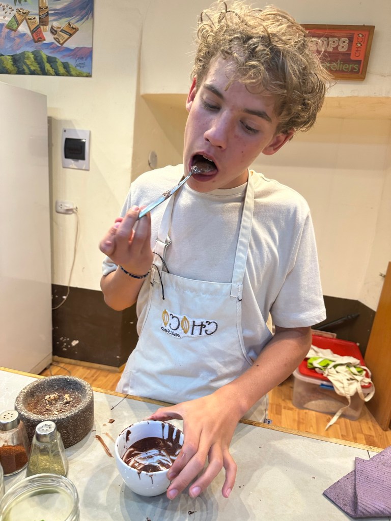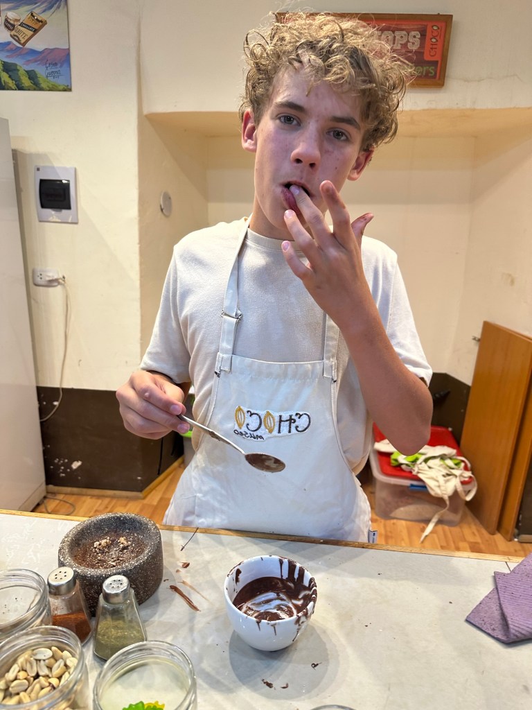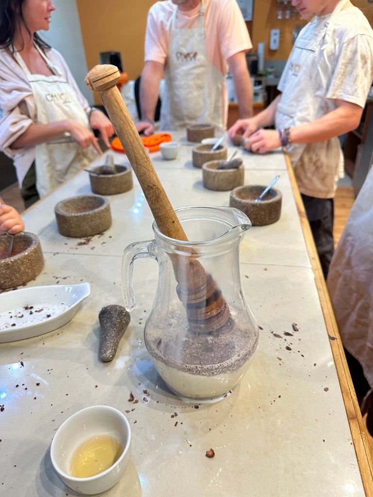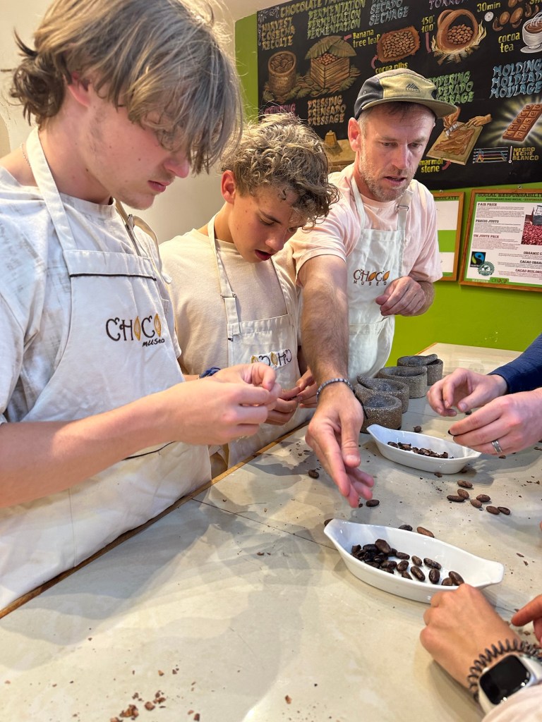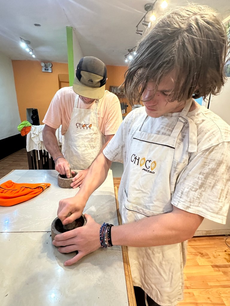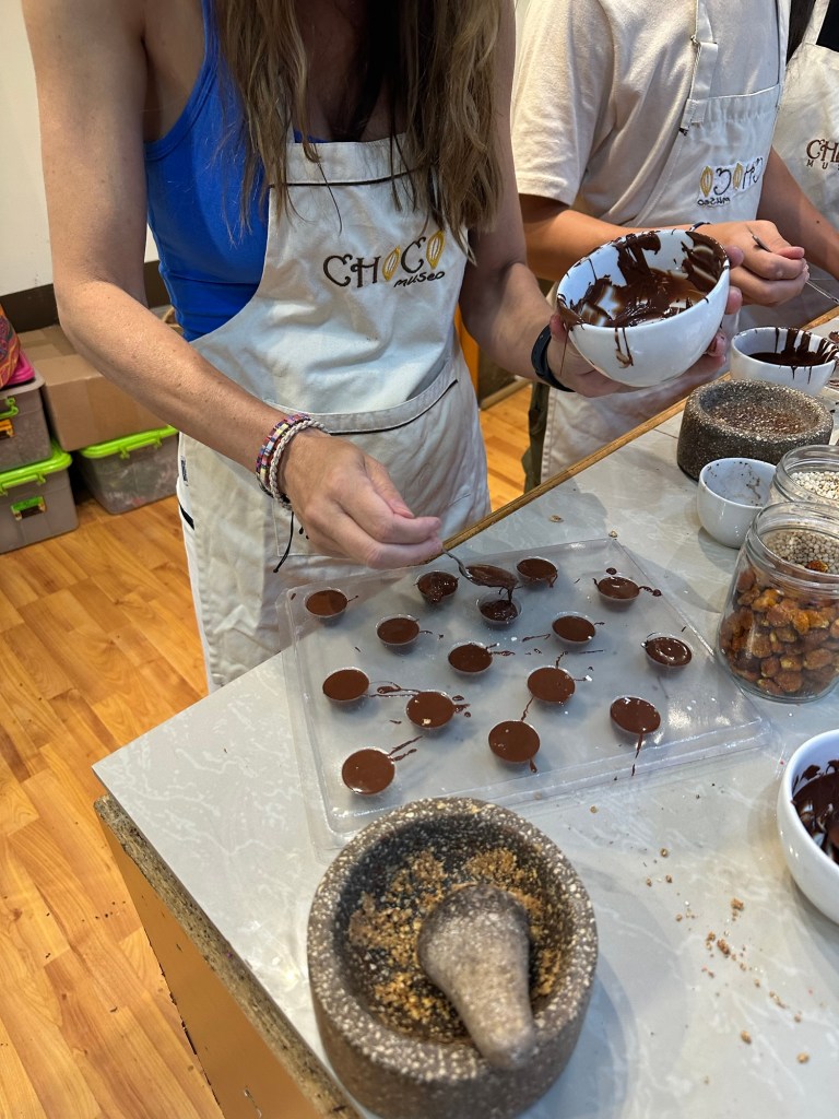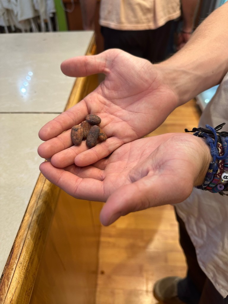 Chocolate Tour – I had booked this on Trip Advisor but when we got there they apologized and said there was a mistake on their bookings and they did not have a tour that day, after a little talking to the girl running the museum she said she could fit us into a cooking class that was happening right then. We were slightly disappointed but that was made all better once we were hit with the smell of fresh cocoa beans roasting! We ended up loving learning how to take cocoa beans still in shell and transform them in to delicious chocolate treats! Double Thumbs Up!!!